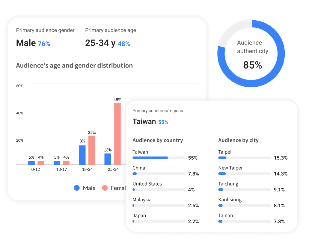 Go beyond basic metrics such as follower and like counts with deeper audience insights, engagement trends, and creator quality signals.