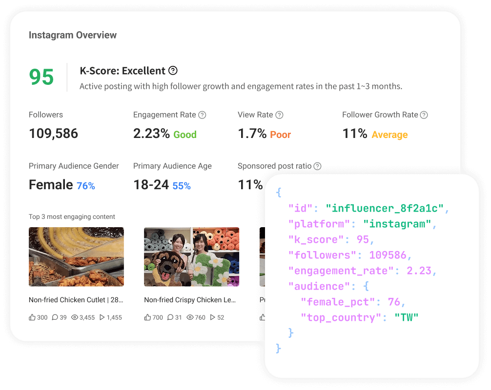 Connect creator data to your internal CRM to automatically evaluate influencer performance and streamline partner selection.